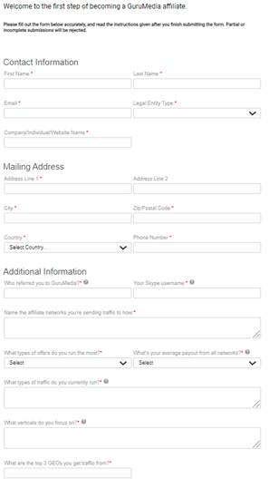Once you’ve found a campaign you’d like to take part in, click the link to the CPA network site and sign up or log in (as the above example was with GuruMedia, we’ll stick with them for the rest of our examples).