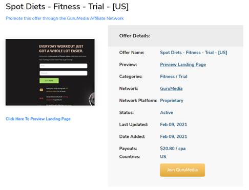 Once you’ve found an offer you like the look of, click on it to view more details (we picked Spot Diets – Fitness – Trial – [US] for this example).
